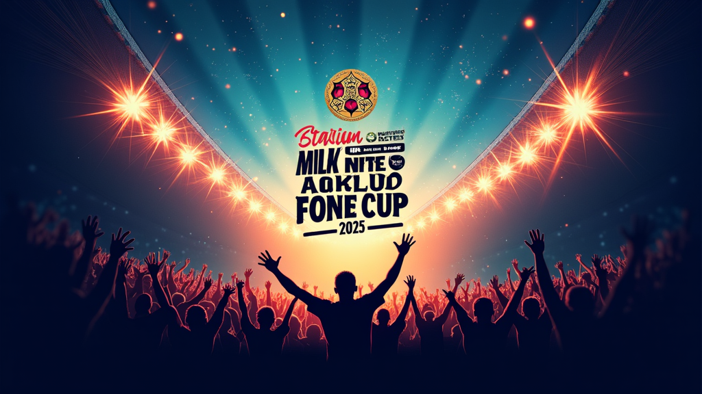 Constellation of Champions: A design set against a cosmic backdrop where stars represent participating clubs, with the FIFA Club World Cup trophy as the central, brightest 'star' or nebula. 'The Trophy Quest' is depicted as a celestial journey, leading to 'Champions' Glory 2025'.