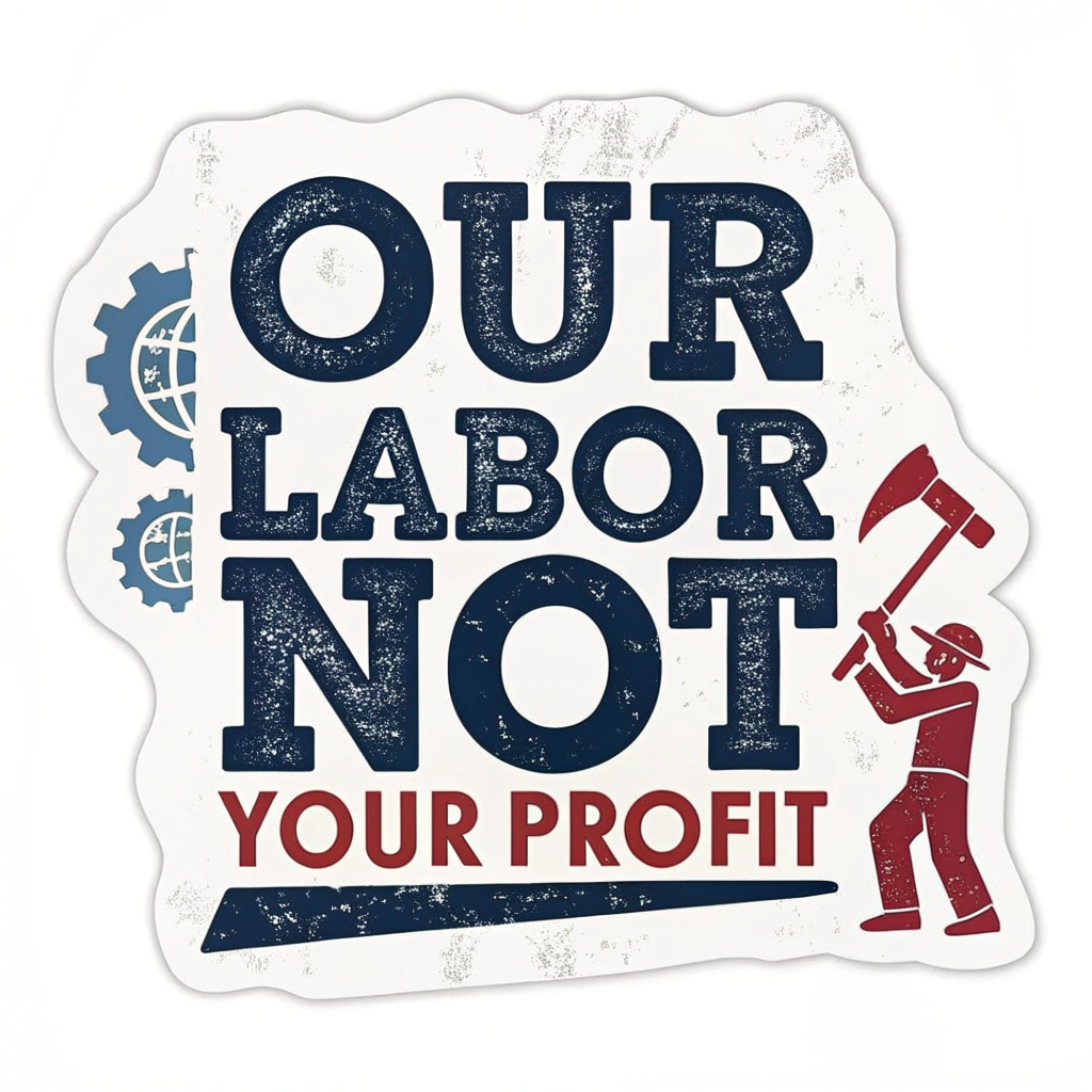 Sub-Design 3: Bold text design reading 'OUR LABOR, NOT YOUR PROFIT' using a strong, impactful typeface, possibly with a distressed or stencil effect.